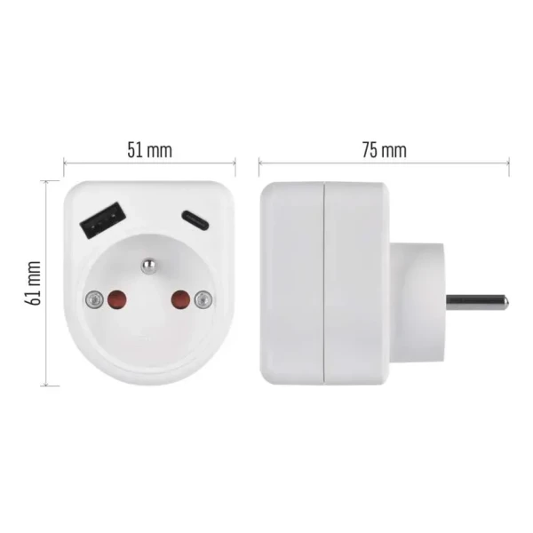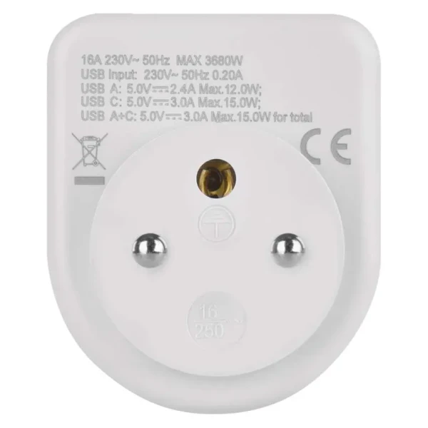 Rozbočovacia zásuvka 1×, 1×USB-A + 1×USB-C, biela P0074