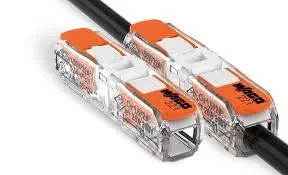221-2411 Priebežná páčková svorka WAGO Inline pre spojenie dvoch vodičov v jednej línii. Univerzálna pre drôt aj lanko 0,2-4 mm2. Ideálna na predĺženie káblov.