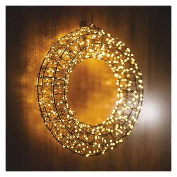 Veniec s 480 LED EMOS – teplá biela farba, priemer 38 cm, 5 m kábel, IP44. Vhodný vonku i vnútri. Príkon len 4,5 W, životnosť 10 000 h. Perfektný doplnok na balkón, terasu či vstupné dvere.