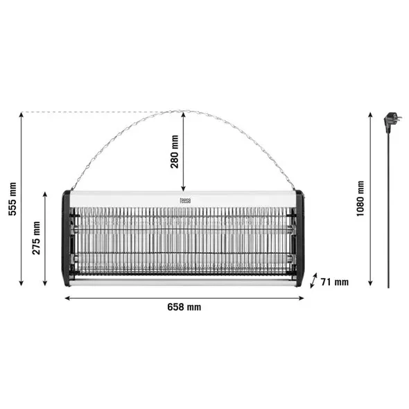 Už vás omrzeli muchy, komáre a ďalší otravný hmyz? UV lampu proti hmyzu Teesa určite vyskúšajte. Tento model bol navrhnutý s ohľadom na najvyššiu efektivitu a je určený do miestností s veľkou plochou – až 150 m2, preto sa skvele hodí do skladov, obchodov a dielní.
