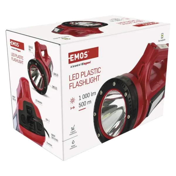 Výkonné LED svietidlo EMOS s dosvitom až 500m, 8+ režimov, powerbankou, USB-C nabíjaním a výdržou až 22 hodín.