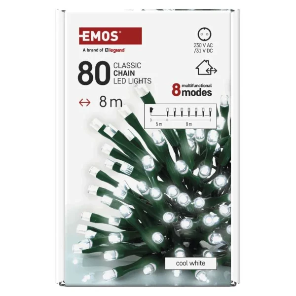 Vianočná LED reťaz EMOS s LED v klasickom rozmere. Vhodná pre použitie vo vnútorných aj vonkajších priestoroch… + More