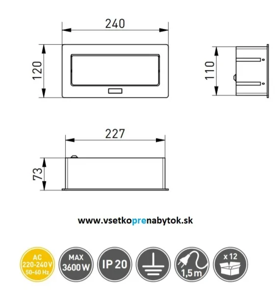 Výklopná kancelárska zásuvka. Technické údaje: napätie 220-240V, 50-60 Hz USB …